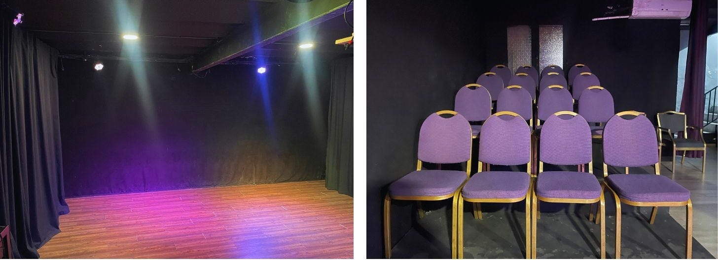 Frente al escenario hay una tarima elevada con sillas de madera. Sobre el escritorio tenemos una mesa de mezclas y del techo cuelgan unos cuantos focos. Cuando el profesor nos reúne en círculo y nos pregunta qué tal todo, las respuestas son previsibles teniendo en cuenta que estamos a inicios de semana…
